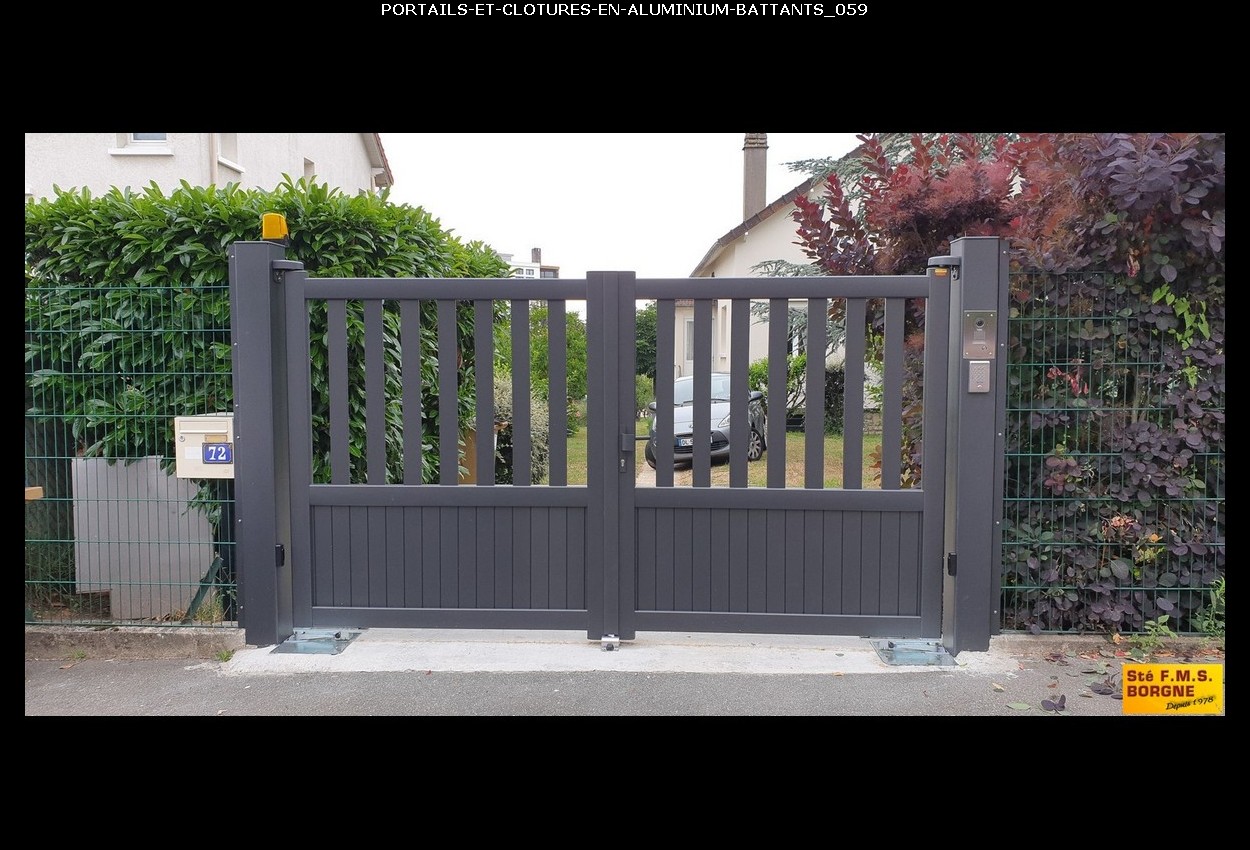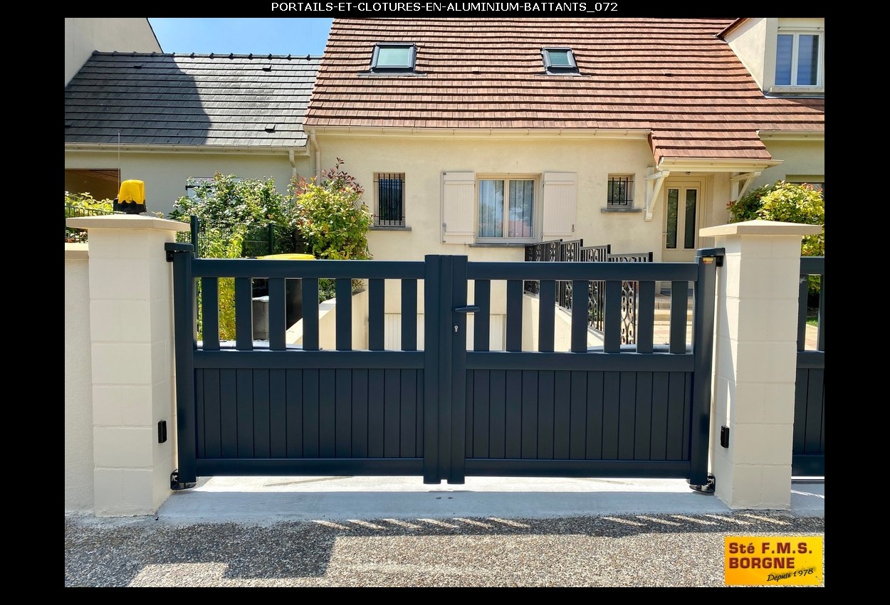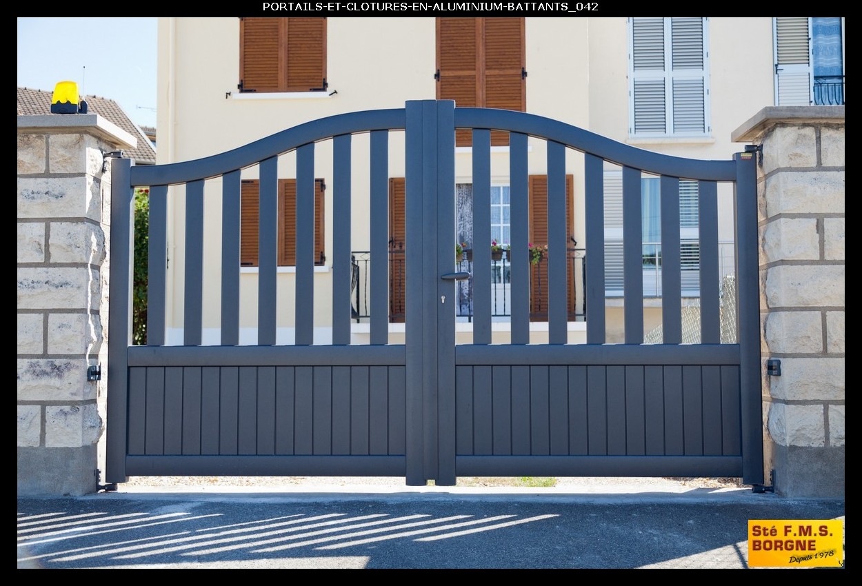 Le portail battant, proposé en aluminium, métal, PVC ou bois, allie esthétique et sécurité pour sublimer l'entrée de votre propriété. L'aluminium assure un style contemporain et résistant, le métal offre une robustesse durable, le PVC est économique et sans entretien, tandis que le bois apporte un charme authentique et naturel.