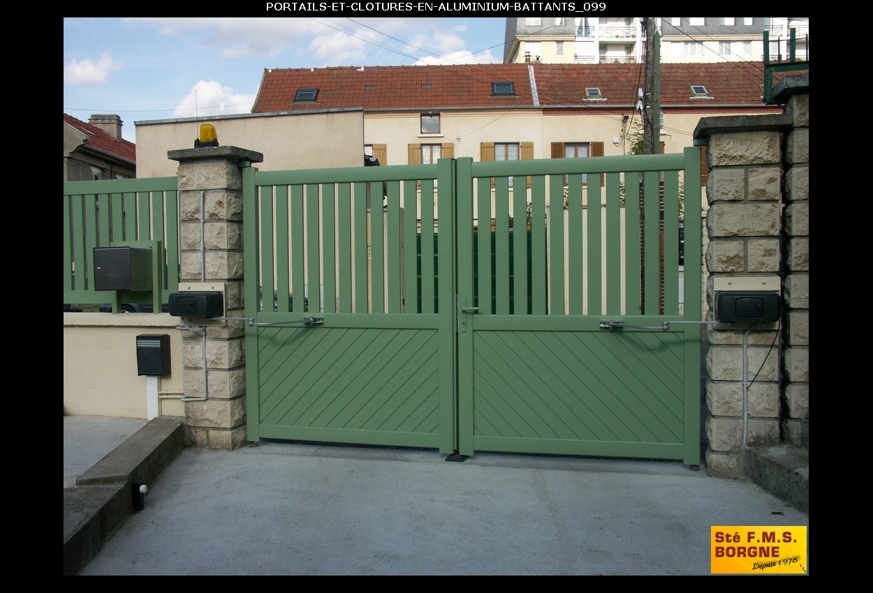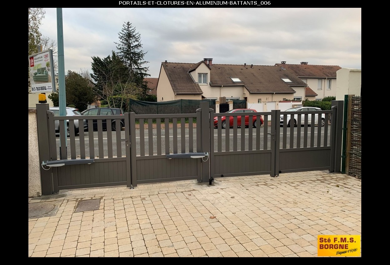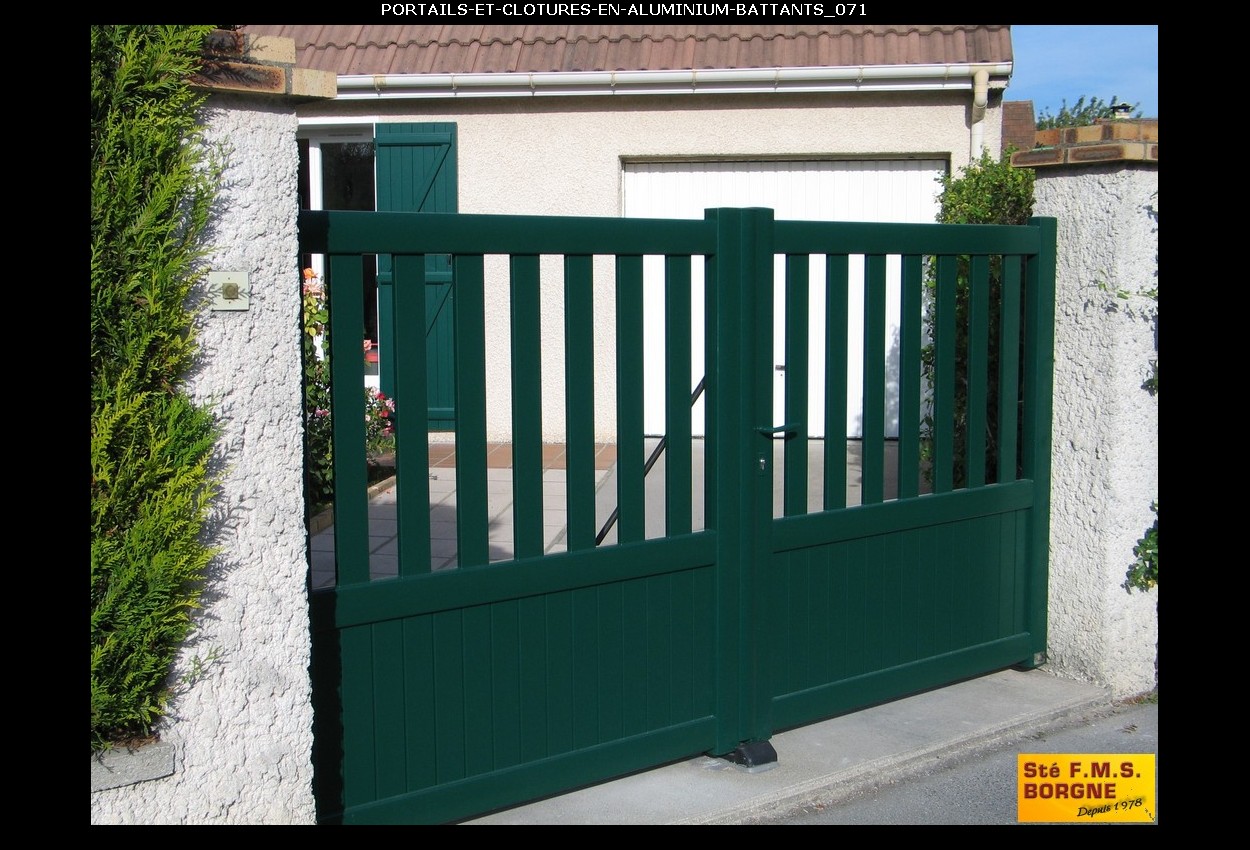 Le portail battant, proposé en aluminium, métal, PVC ou bois, allie esthétique et sécurité pour sublimer l'entrée de votre propriété. L'aluminium assure un style contemporain et résistant, le métal offre une robustesse durable, le PVC est économique et sans entretien, tandis que le bois apporte un charme authentique et naturel.